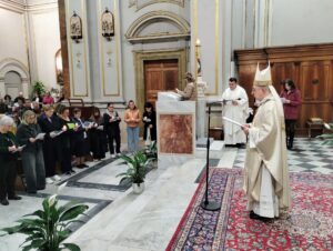 Nell’omelia, il vescovo ha richiamato il significato profondo della festa liturgica celebrata in quel giorno – la dedicazione della Basilica Lateranense, madre di tutte le chiese – per ricordare che la Chiesa non è fatta solo di mura, ma di persone. «Celebriamo una domenica particolare – ha spiegato – perché anche noi siamo chiamati ad essere edificio di Dio, corpo vivo della Chiesa».
